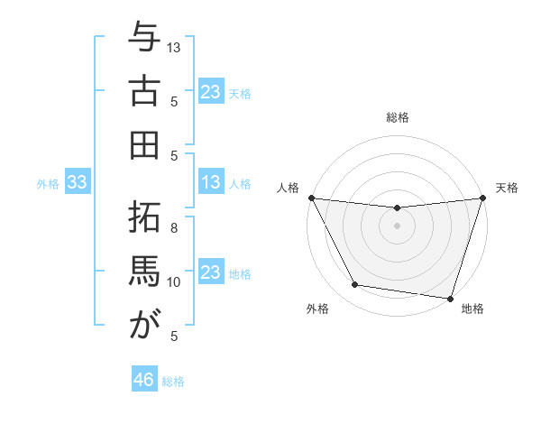 与古田 拓馬がさんを姓名の画数から五運を鑑定
