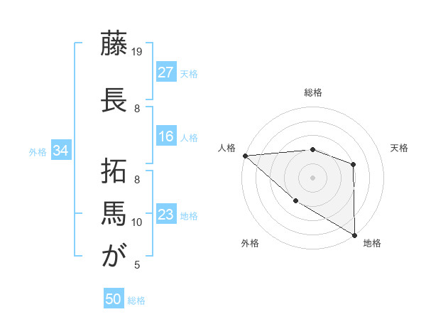 藤長 拓馬がさんを姓名の画数から五運を鑑定