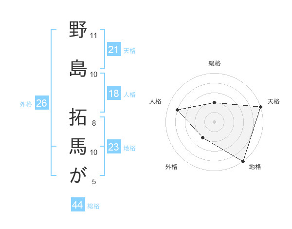 野島 拓馬がさんを姓名の画数から五運を鑑定