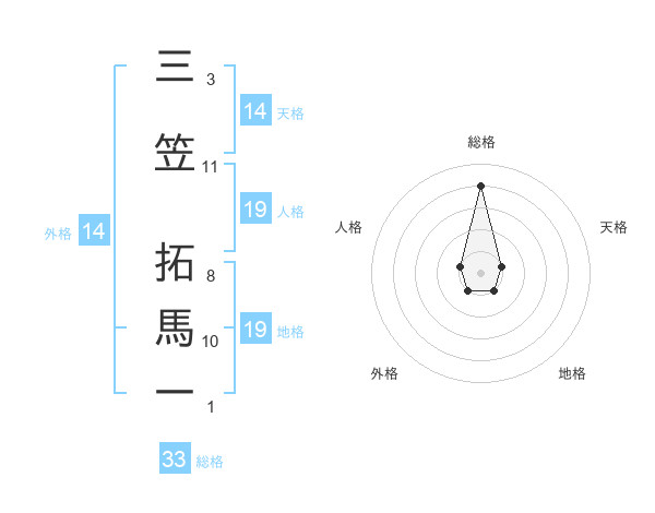 三笠 拓馬一さんを姓名の画数から五運を鑑定