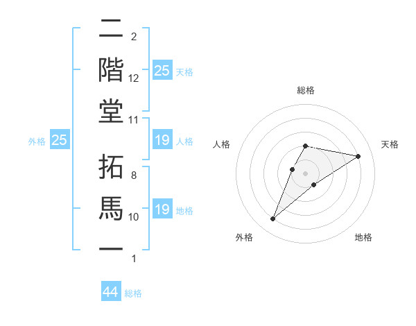 二階堂 拓馬一さんを姓名の画数から五運を鑑定