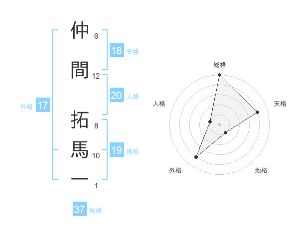 仲間 拓馬一さんの天格は18画の4点!