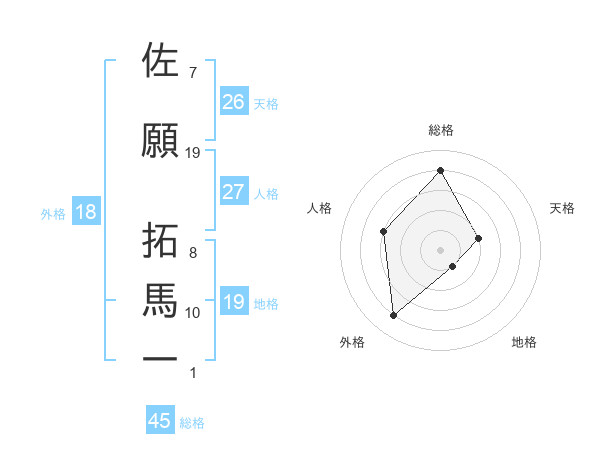 佐願 拓馬一さんを姓名の画数から五運を鑑定