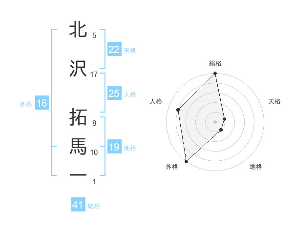北沢 拓馬一さんを姓名の画数から五運を鑑定
