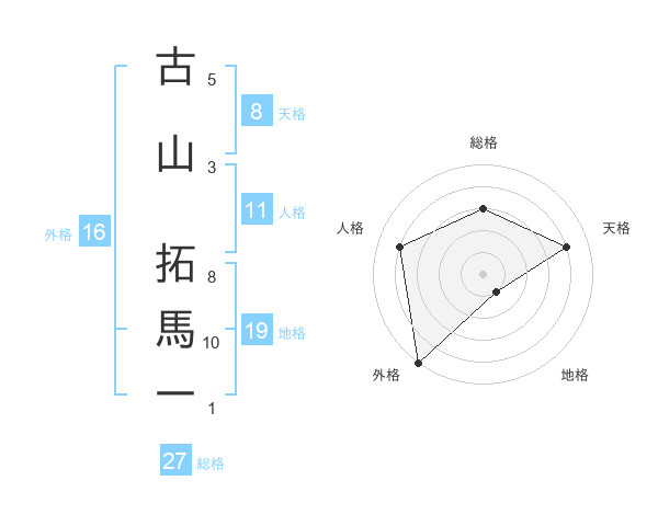 古山 拓馬一さんを姓名の画数から五運を鑑定