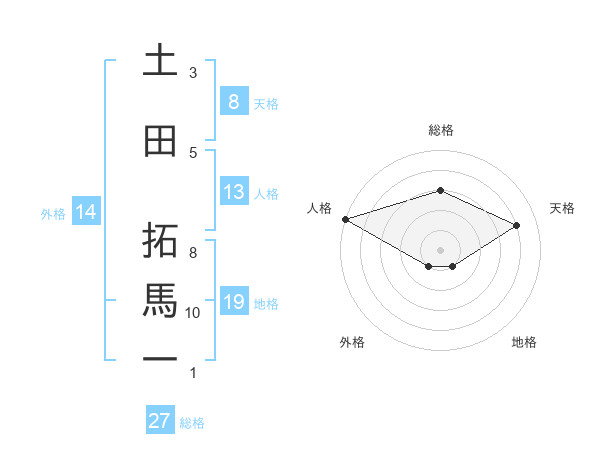 土田 拓馬一さんを姓名の画数から五運を鑑定