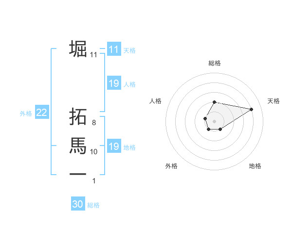 堀 拓馬一さんの総格は30画の2点!