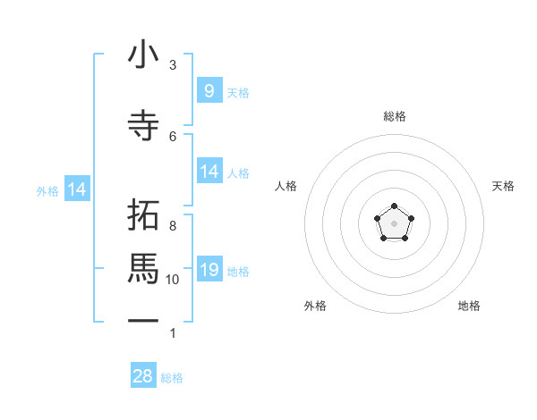 小寺 拓馬一さんの総格は28画の1点!