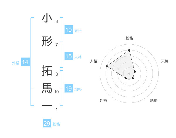 小形 拓馬一さんを姓名の画数から五運を鑑定