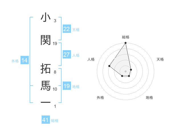 小関 拓馬一さんの総格は41画の5点!