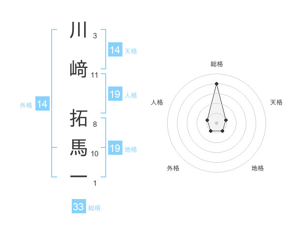 川﨑 拓馬一さんを姓名の画数から五運を鑑定