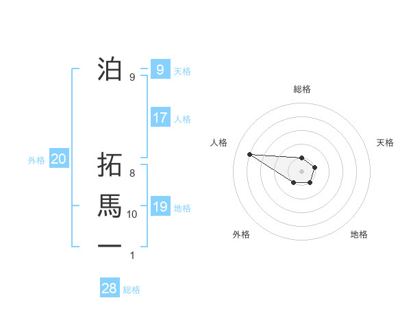 泊 拓馬一さんの総格は28画の1点