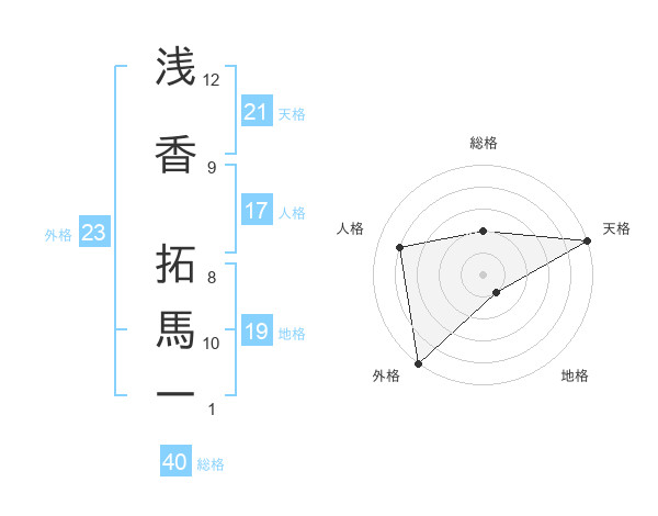 浅香 拓馬一さんを姓名の画数から五運を鑑定