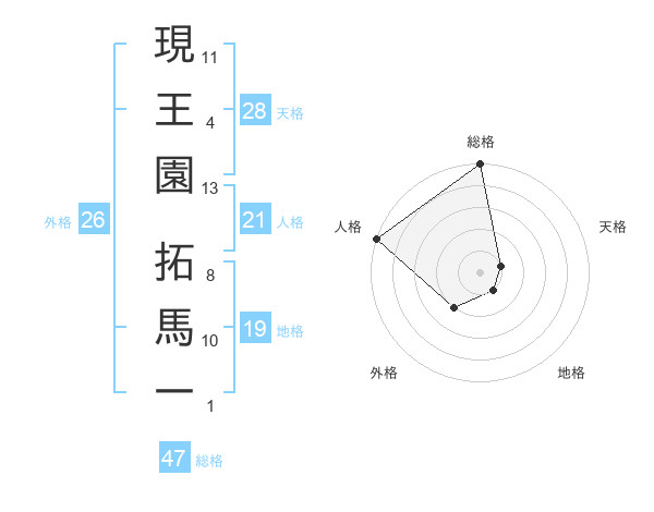 現王園 拓馬一さんを姓名の画数から五運を鑑定