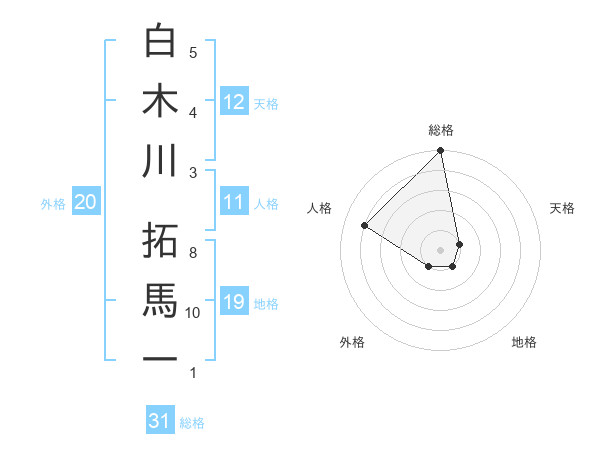 白木川 拓馬一さんを姓名の画数から五運を鑑定