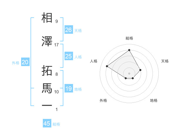 相澤 拓馬一さんを姓名の画数から五運を鑑定