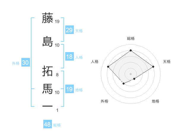 藤島 拓馬一さんの総格は48画の4点!
