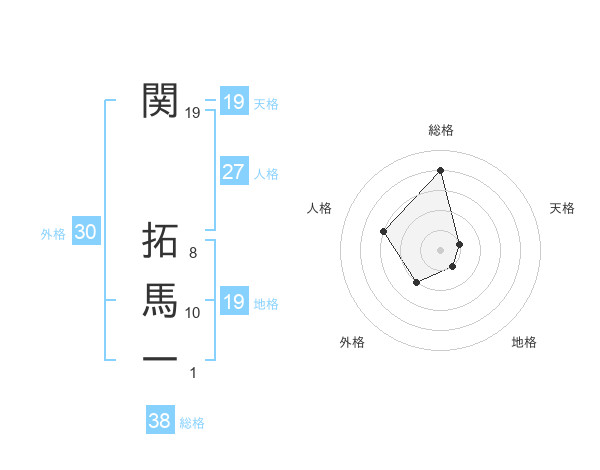関 拓馬一さんを姓名の画数から五運を鑑定