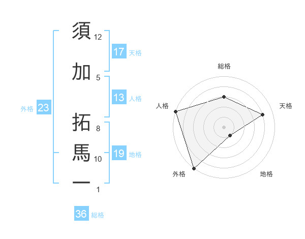 須加 拓馬一さんの外格は23画の5点!