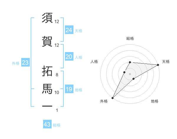 須賀 拓馬一さんの天格は24画の5点!
