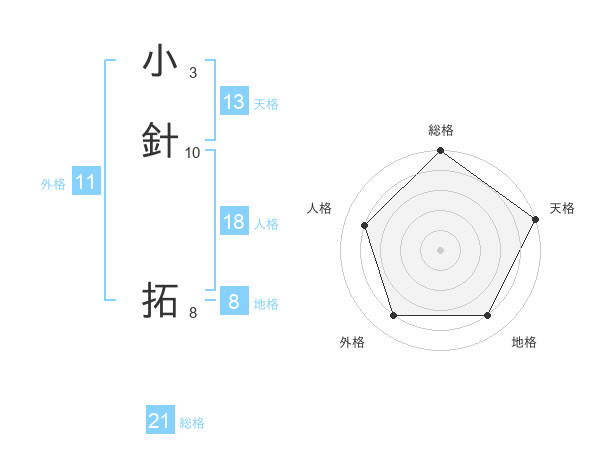 小針 拓さんの総格は21画の5点!