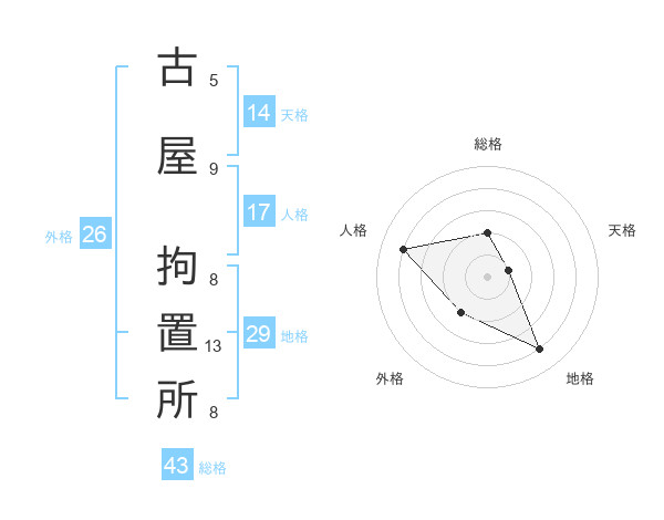 古屋 拘置所さんを姓名の画数から五運を鑑定
