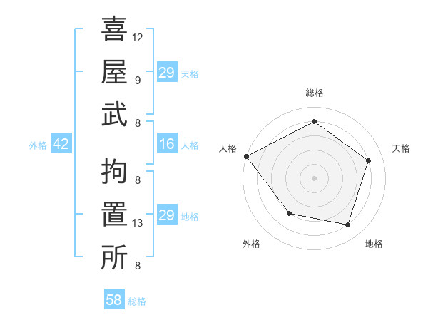 喜屋武 拘置所さんの人格は16画の5点!