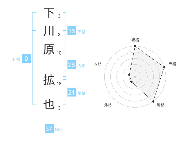 下川原 拡也さんを姓名の画数から五運を鑑定