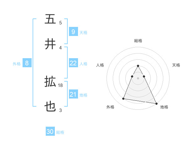 五井 拡也さんの総格は30画の2点!