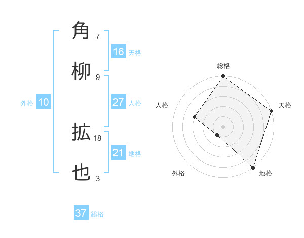 角柳 拡也さんを姓名の画数から五運を鑑定
