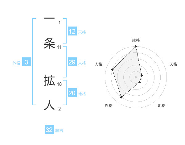 一条 拡人さんの総格は32画の5点!