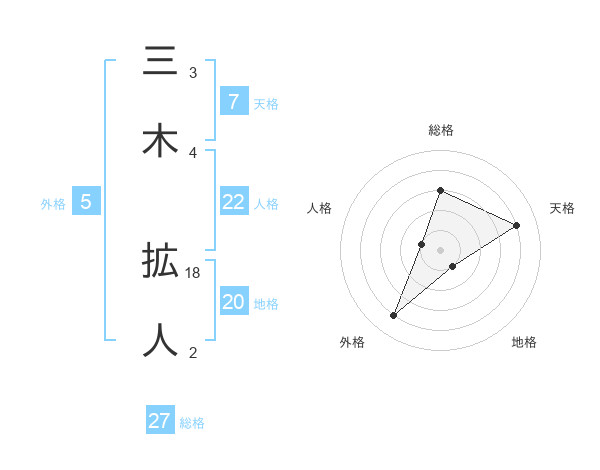 三木 拡人さんの天格は7画の4点!