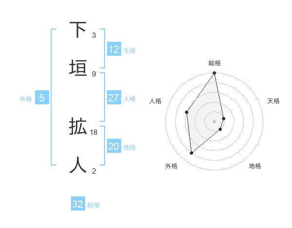 下垣 拡人さんの天格は12画の1点!