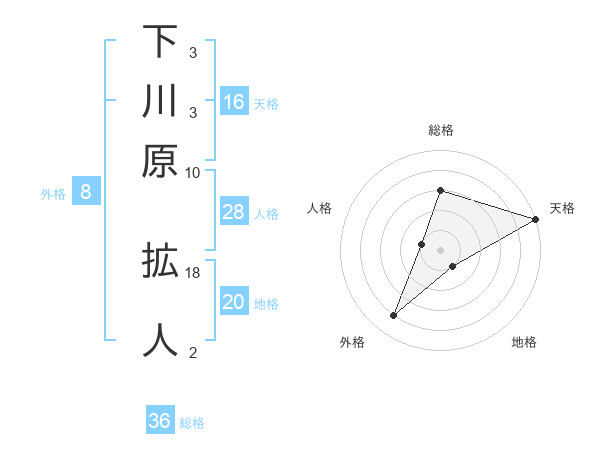 下川原 拡人さんを姓名の画数から五運を鑑定
