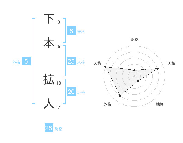 下本 拡人さんの天格は8画の4点!