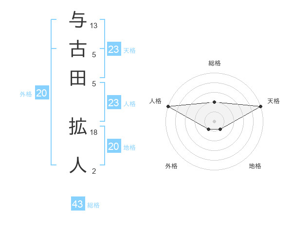 与古田 拡人さんを姓名の画数から五運を鑑定