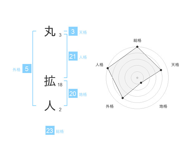 丸 拡人さんの総格は23画の5点!