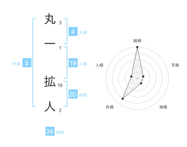 丸一 拡人さんを姓名の画数から五運を鑑定