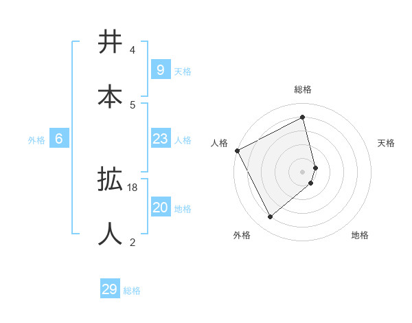 井本 拡人さんの総格は29画の4点!