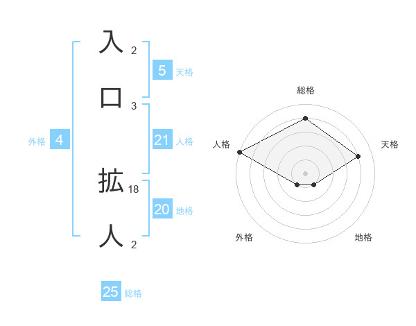 入口 拡人さんの地格は20画の1点!