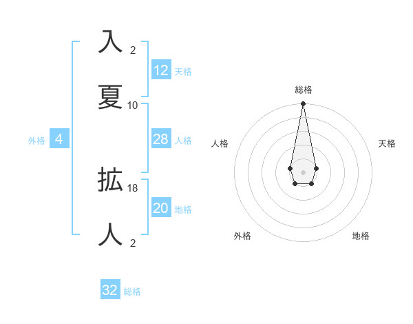 入夏 拡人さんを姓名の画数から五運を鑑定