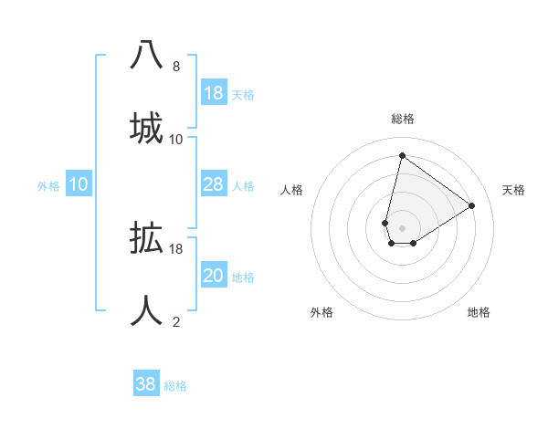 八城 拡人さんの総格は38画の4点!