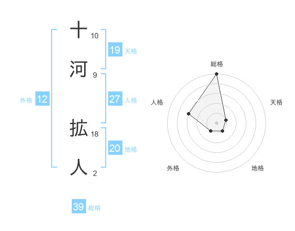 十河 拡人さんを姓名の画数から五運を鑑定
