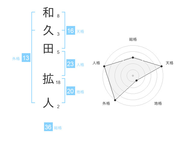 和久田 拡人さんを姓名の画数から五運を鑑定