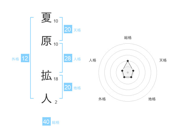 夏原 拡人さんの総格は40画の2点!
