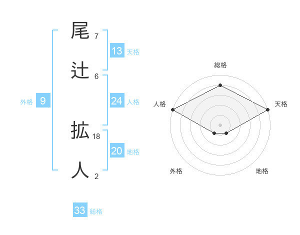 尾辻 拡人さんを姓名の画数から五運を鑑定