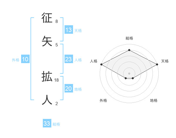 征矢 拡人さんの天格は13画の5点!