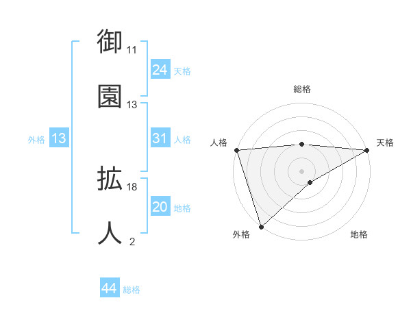 御園 拡人さんの外格は13画の5点!