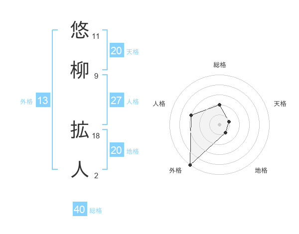 悠柳 拡人さんの総格は40画の2点!