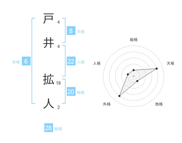 戸井 拡人さんの総格は28画の1点!
